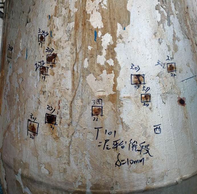 為保證企業(yè)順利開車,工程技術中心抽調精干力量,組織協調無損檢測、打磨輔助、腳手架搭設等多家單位,成立了40余人的項目組,并在停車前完成全部入廠手續(xù)的辦理?,F場檢驗時,項目組人員嚴格按照院公司管理體系、作業(yè)指導標準開展檢驗檢測工作,累計發(fā)現現場標識錯誤、銘牌缺失、地腳螺栓缺失、腐蝕減薄、焊接接頭開裂、氫鼓包等各類問題40余項。
