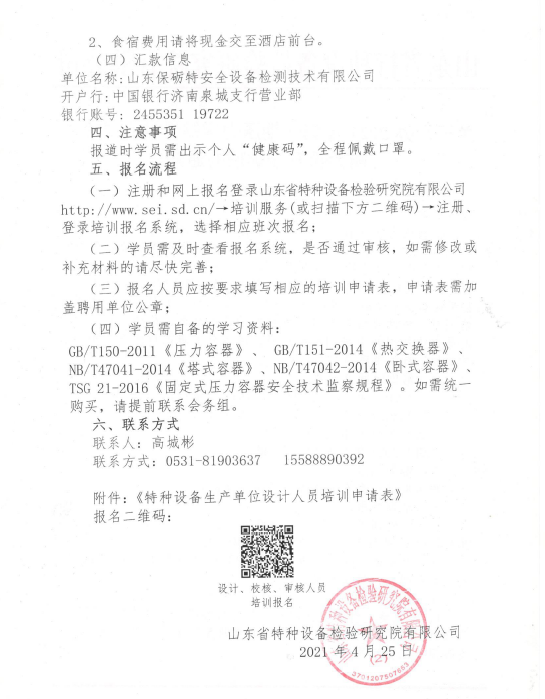 2021年第一期壓力容器設(shè)計人員專業(yè)能力提升培訓(xùn)班的通知
